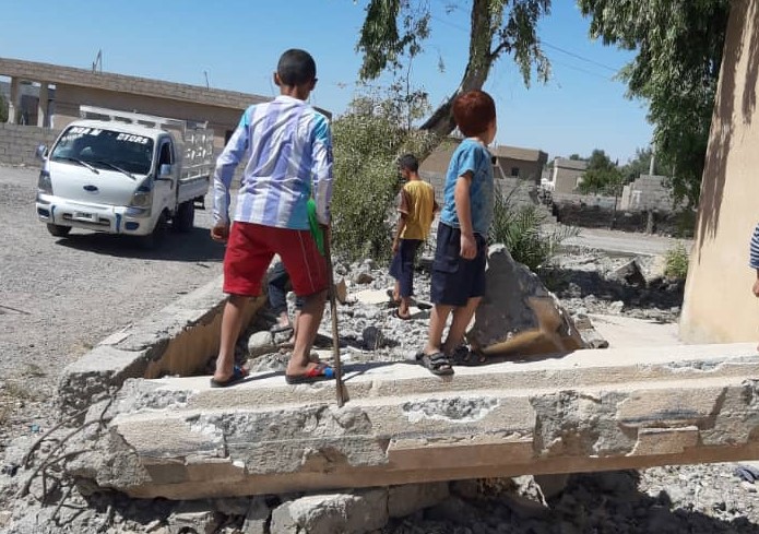 الطفل سليمان أحمد العبد الله، طالب في مدرسة محيميدة الغربية، عبر عن وضعه النفسي قبل وبعد انتهاء المشروع: “لم نكن نستطيع التحرك في الباحة واللعب فيها كما نريد بسبب علمنا بوجود جثة تحت الأنقاض وقسم من أطرافها كان ظاهراً بوضوح وكنا نخاف أيضاً من أن يكون مع الجثة متفجرات.
